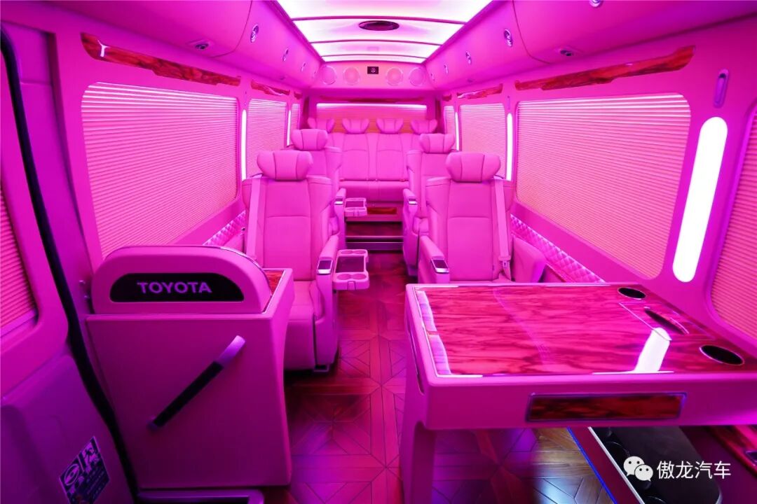 丰田考斯特12座尊享版为您的车内空间打造了多种多样的梦幻的灯光氛围。